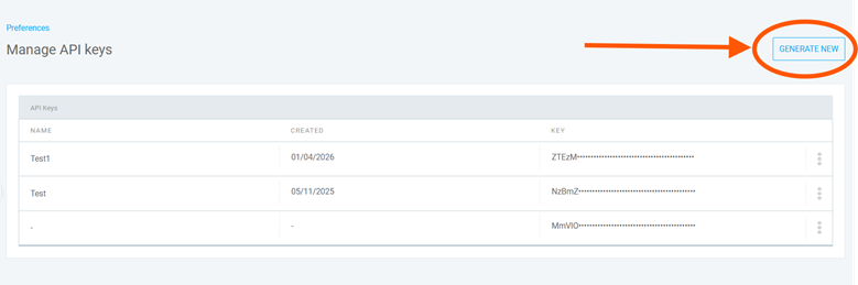 Click on Generate New to create a new API key