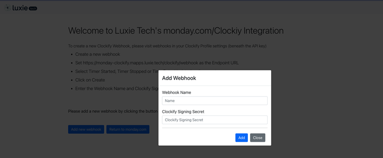 You will need to Install the Luxie Tech Integration to connect the Clockify app to your monday.com account.