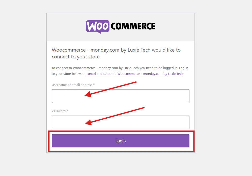 - Log in using your WooCommerce credentials and click Login.